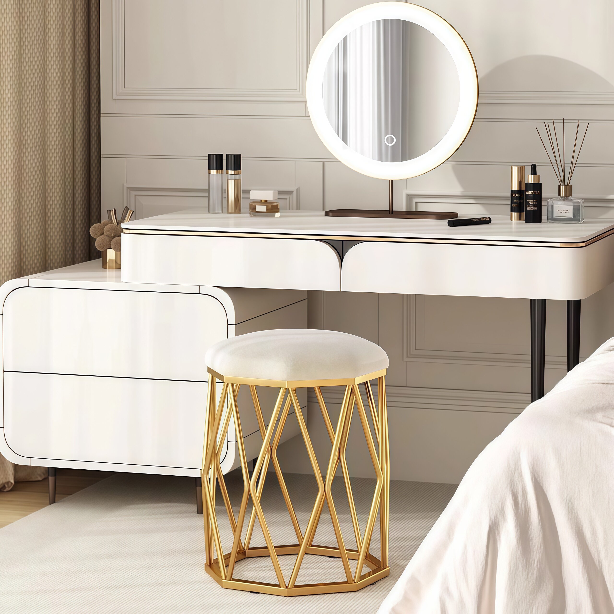 化妆凳梳妆台凳子家用简约现代ins轻奢女生卧室网红美甲八角圆凳