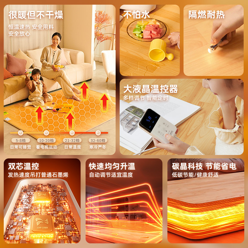 碳晶地暖垫石墨烯地热垫电热地毯韩国加发热地垫移动客厅家用地板