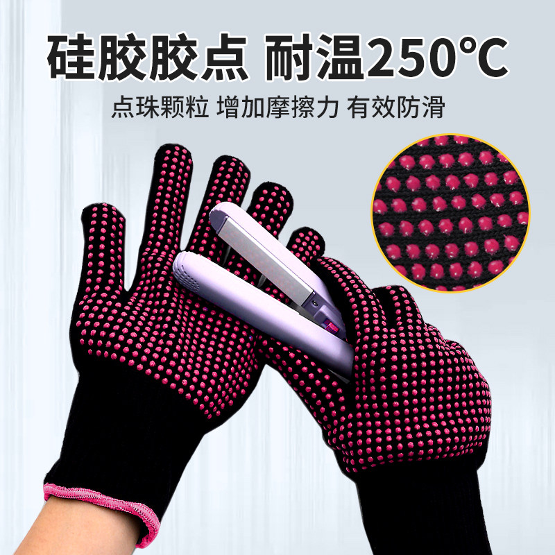 美发专用手套加厚防烫点珠防滑透气250℃隔热耐高温pvc卷发棒彩边