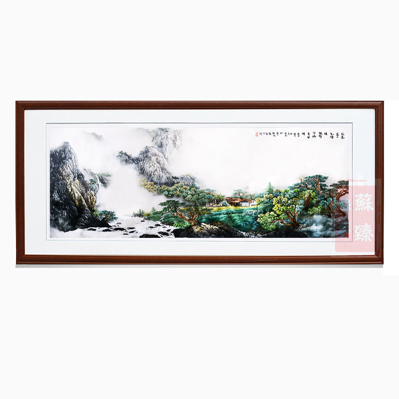 饰画成品挂画山水2.5米纯手工蚕丝线刺绣客厅墙办公室大幅 苏绣装由