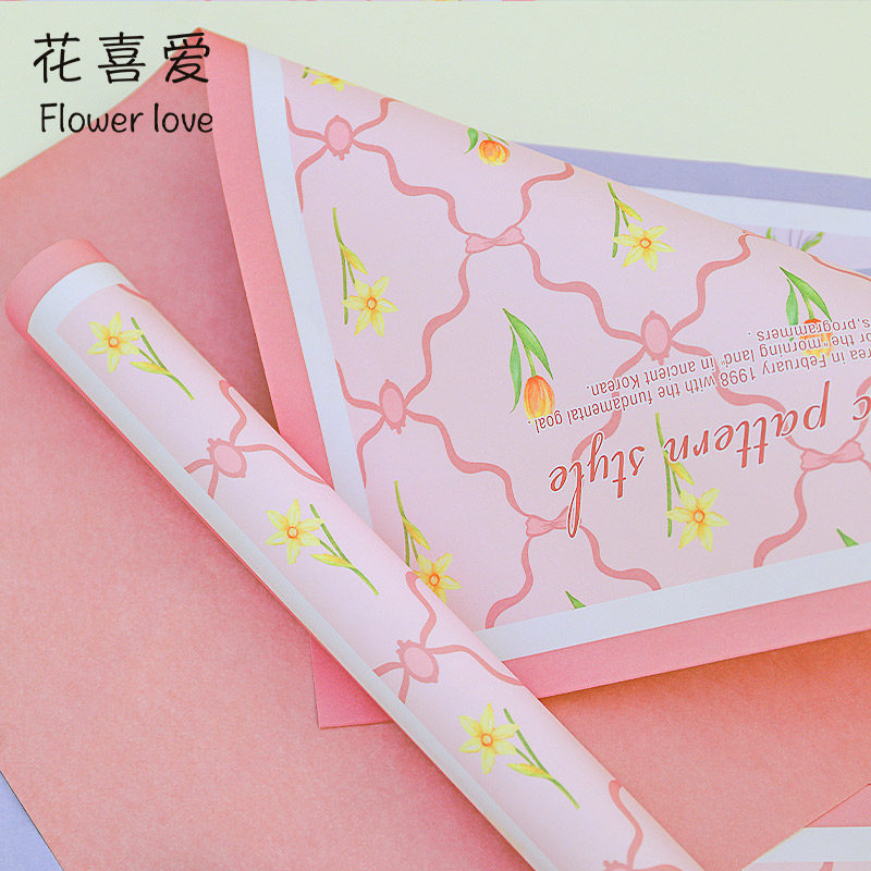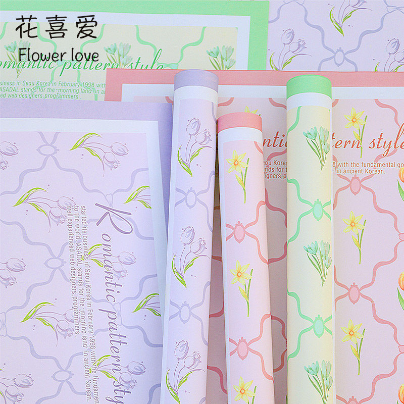 花喜爱春见格子小花包装 材 纸节日花束牛皮纸花店包花纸鲜花包装