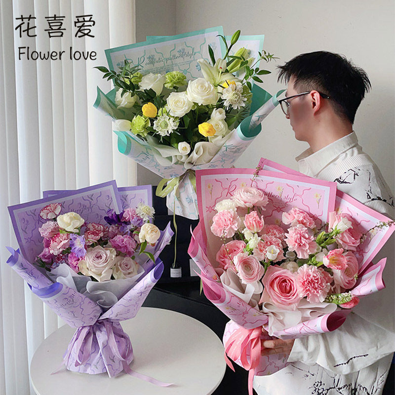花喜爱母亲节花束包装 纸 纸韩风初恋纯色纸防水欧雅纸花店鲜花包装