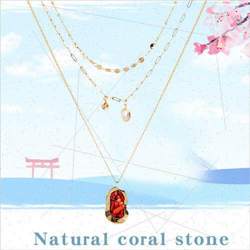 Round Neckla Vintage Stone Whe Layers Necklace Coral Pendant由