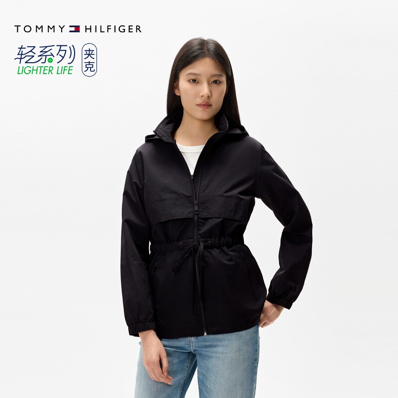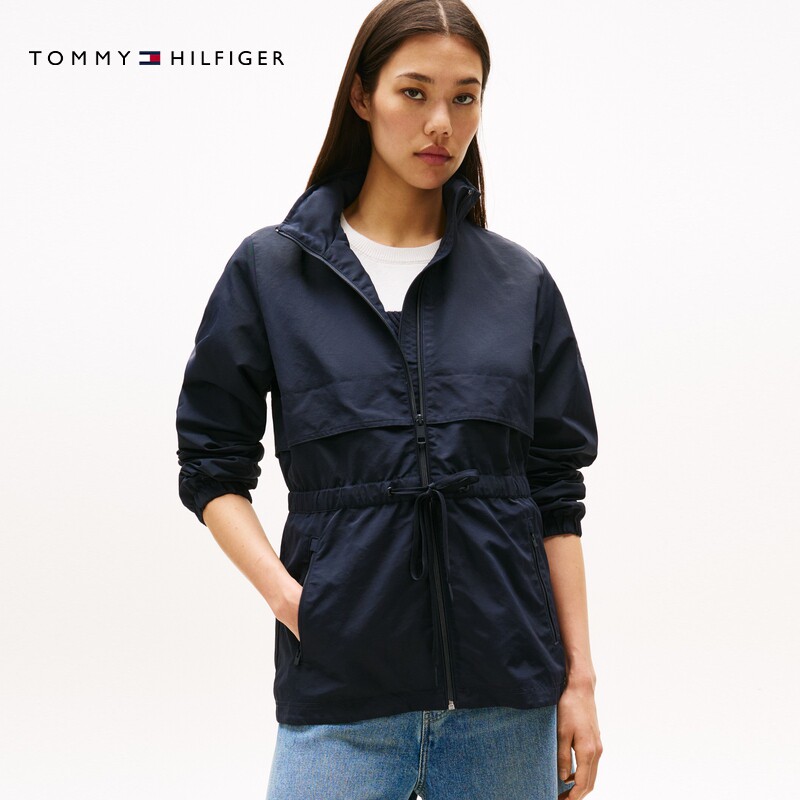 Tommy26春夏新款 女抽绳收腰可收纳连帽立领夹克外套 户外防水