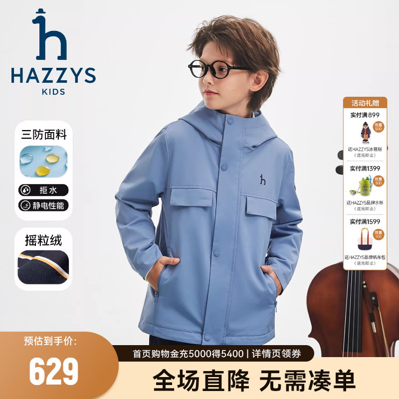 为您提供商品男童风衣2025秋新舒适三防加绒连帽厚外套 hazzys哈吉斯童装的详细介绍,