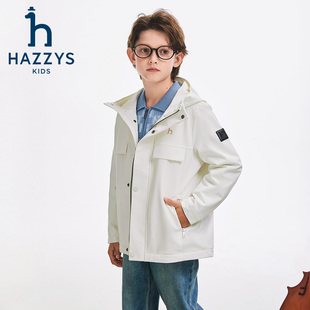 男童风衣2025秋新舒适三防加绒连帽厚外套 hazzys哈吉斯童装由