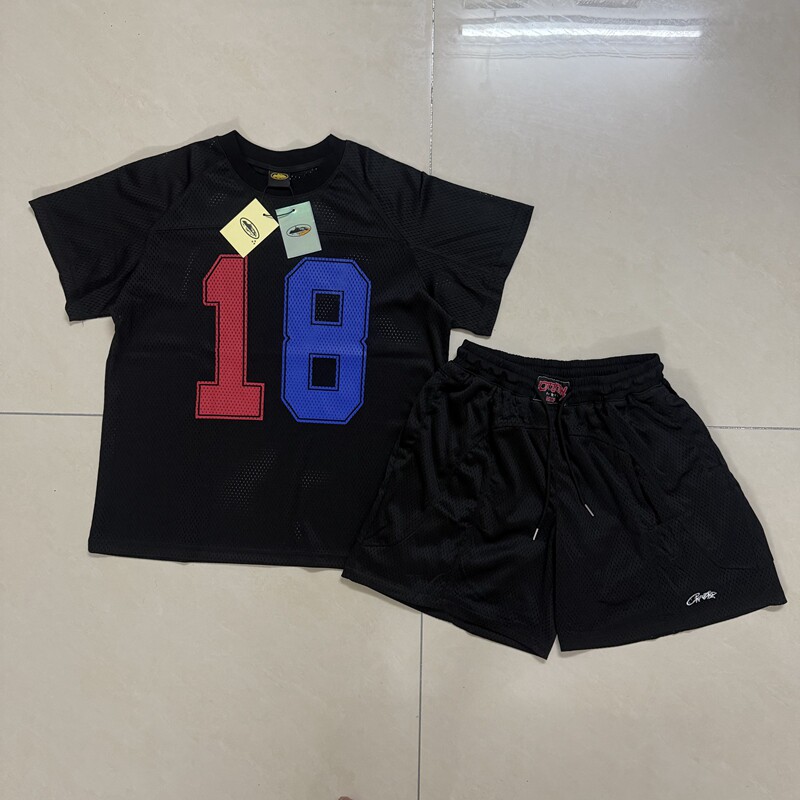 corteiz美式 运动休闲宽松网眼透气T恤球衣短裤 套装 男 高街潮牌夏季