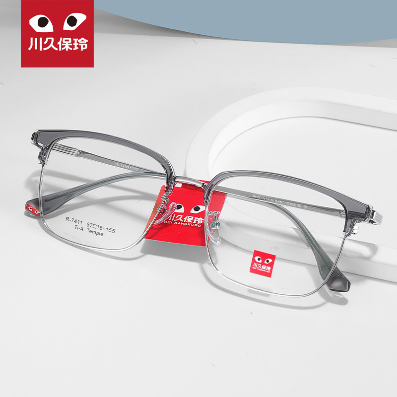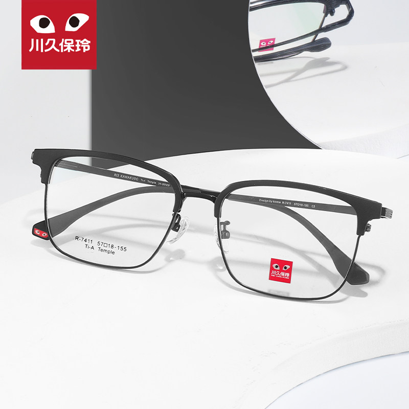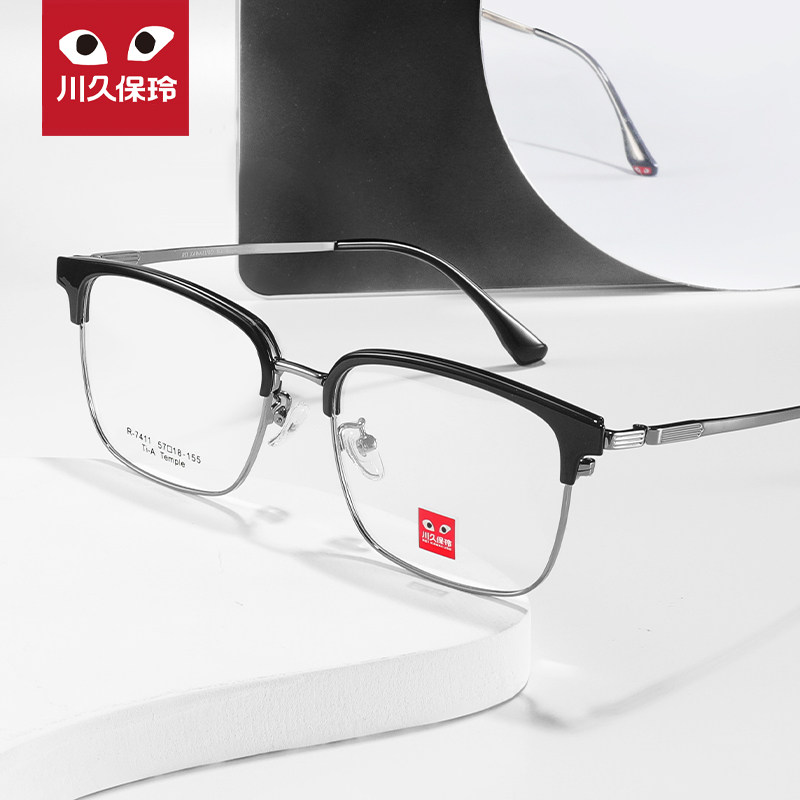 半框商务休闲可配近视眼睛大脸7411 川久保玲超轻眉毛钛架眼镜男款由