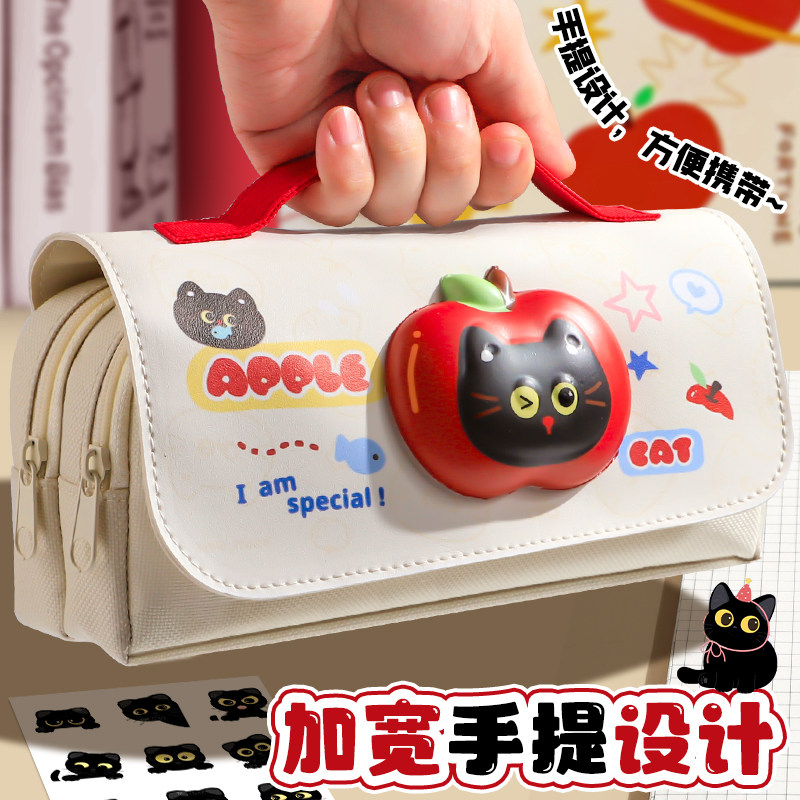 捏一捏 女小学生大容量文具铅笔盒 超解压苹果猫笔袋2025新款