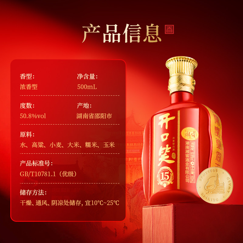 开口笑酒陈酿15大喜浓香型50.8度白酒500mL 6整箱 喜宴佳品