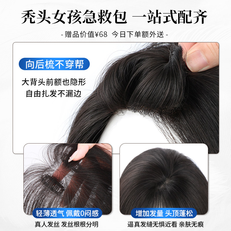 假发女片头顶增发量夏季 隐形遮白发神器蓬松高颅顶真发刘海片 薄款