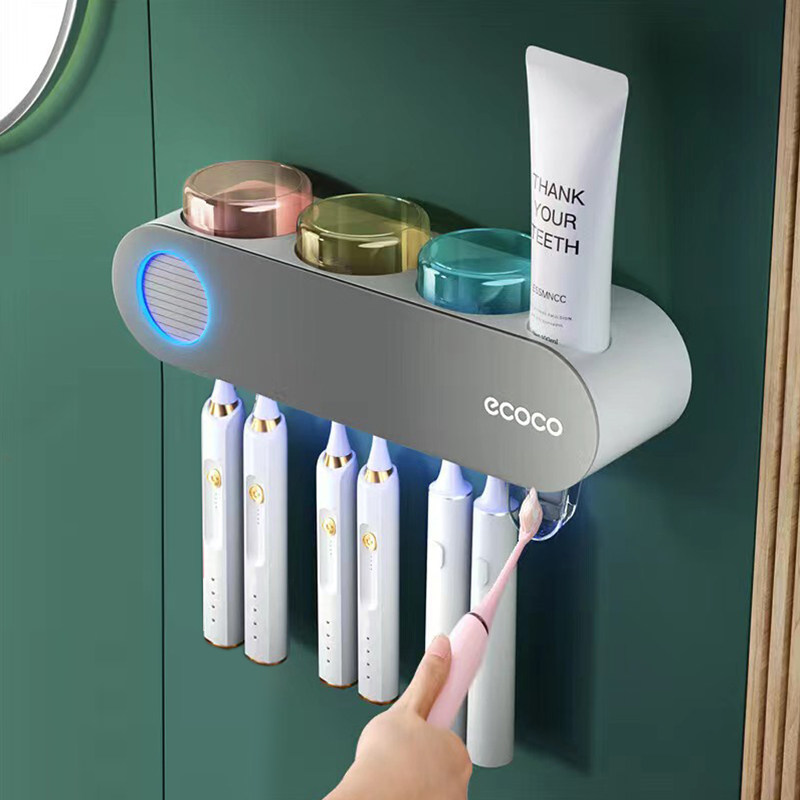 智能电动牙刷消毒器紫外线杀菌烘干一体机牙膏牙杯置物架子壁挂式