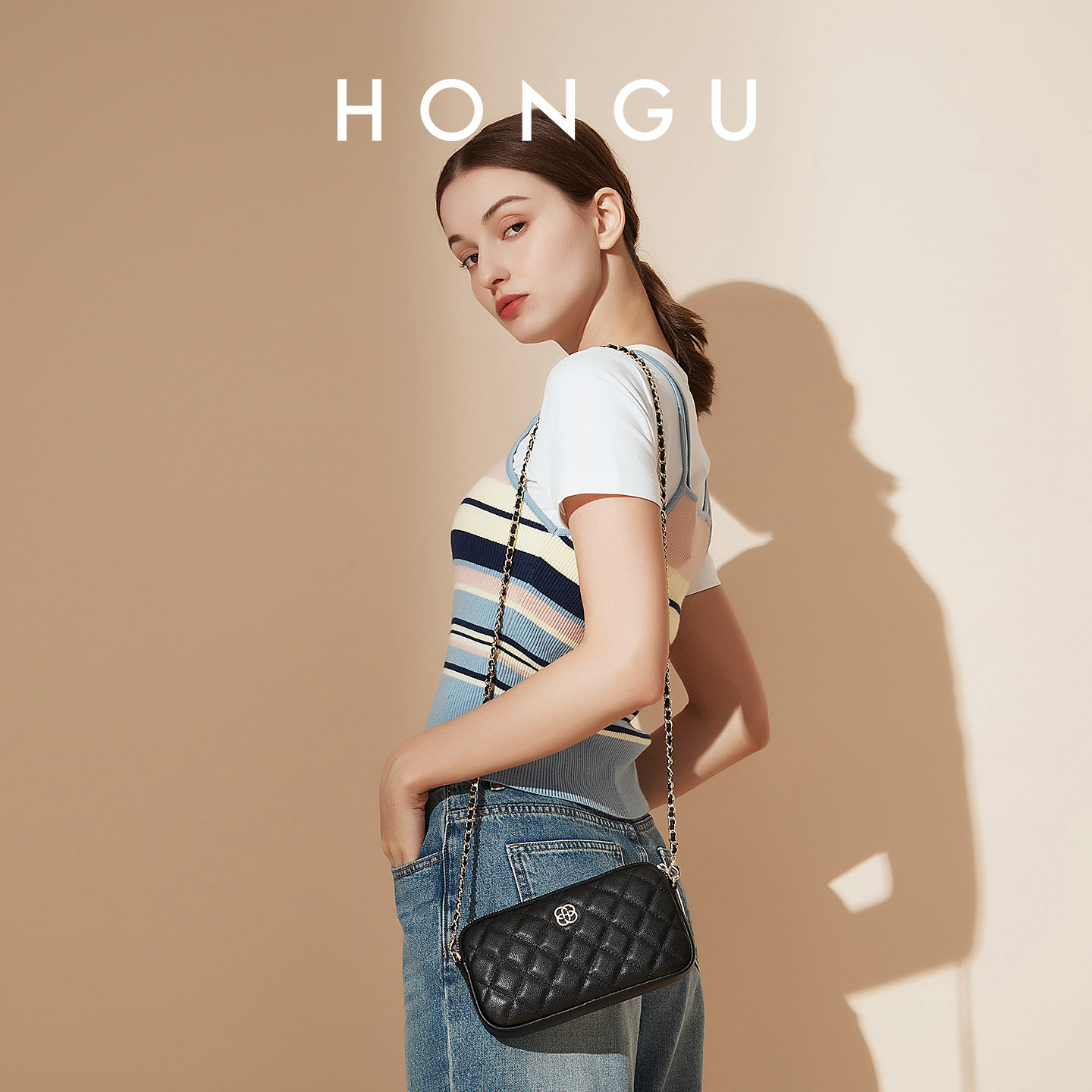 为您提供商品HONGU 头层牛皮迷你小包零钱包休闲菱格斜挎包链条包 红谷女包新款的详细介绍,