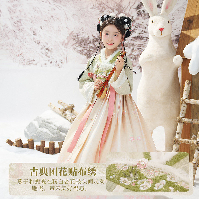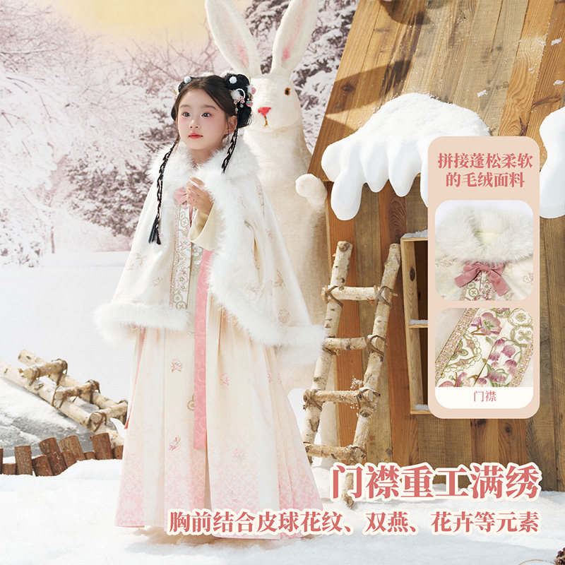 国风汉服女童秋冬套装 刺绣斗篷连衣裙两件套 杏林春燕 十三余童装由