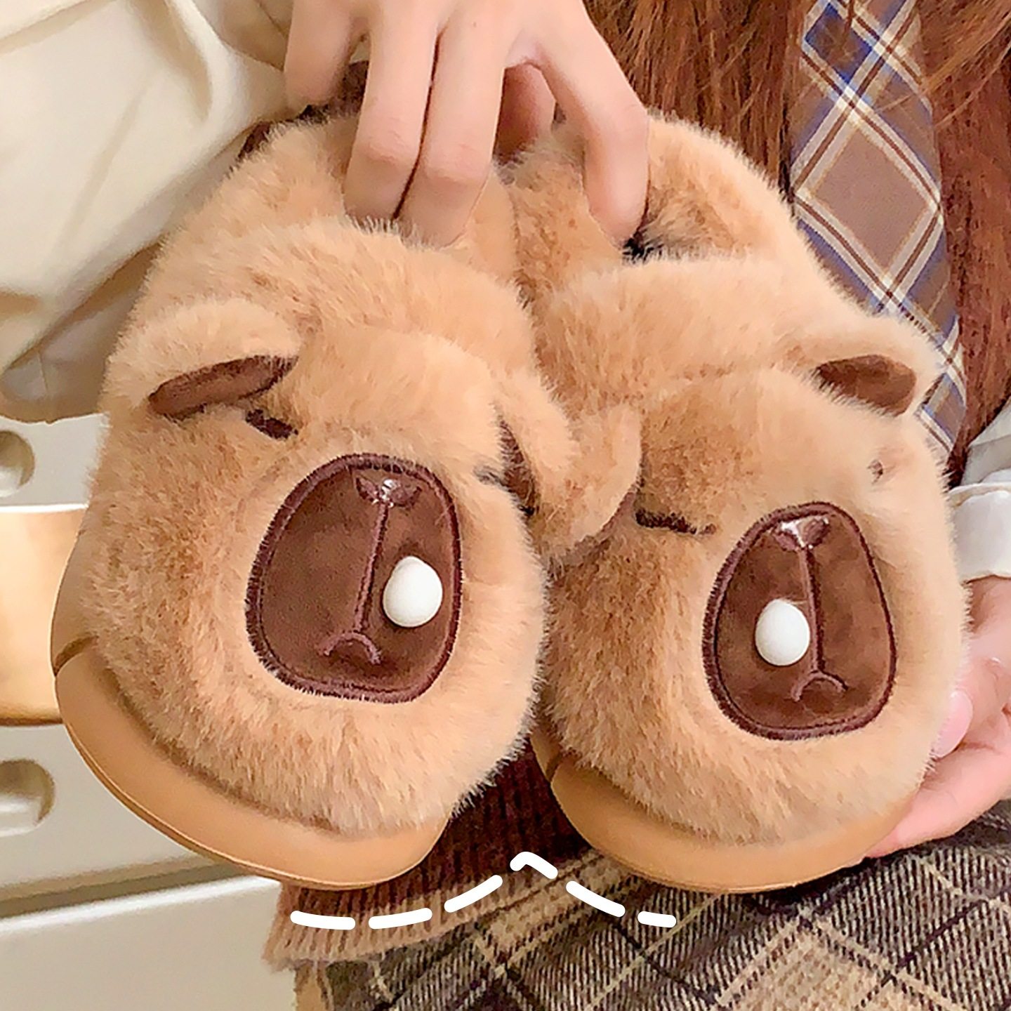 儿童棉拖鞋 居家保暖2025新款 卡皮巴拉中大童毛毛拖鞋 男童包跟冬季