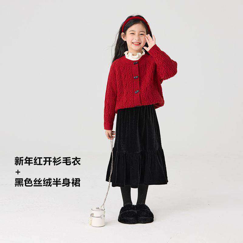 女童套装 2026新款 儿童新年红色毛衣冬装 女孩鱼尾裙子两件套 秋冬款