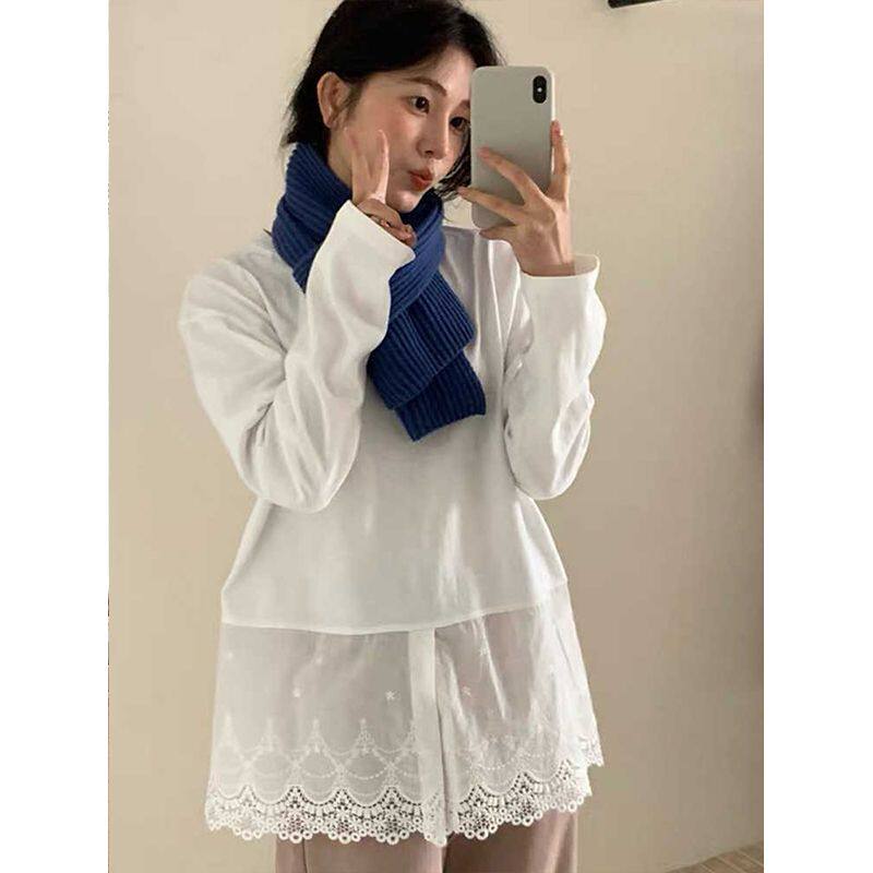 白色圆领长袖 2026新款 打底衫 设计感蕾丝拼接宽松上衣 T恤女春秋季