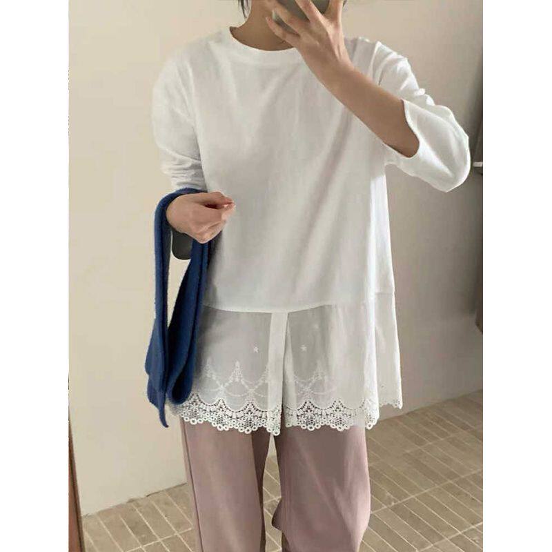 ⭐小红书推荐⭐设计感蕾丝拼接宽松上衣 白色圆领长袖 2026新款 打底衫 T恤女春秋季,所属T恤分类,由淘宝网挑选推荐!小红书抖音网红同款!哪里有卖设计感蕾丝拼接宽松上衣 白色圆领长袖 2026新款 打底衫 T恤女春秋季和多少钱质量怎么样✅。