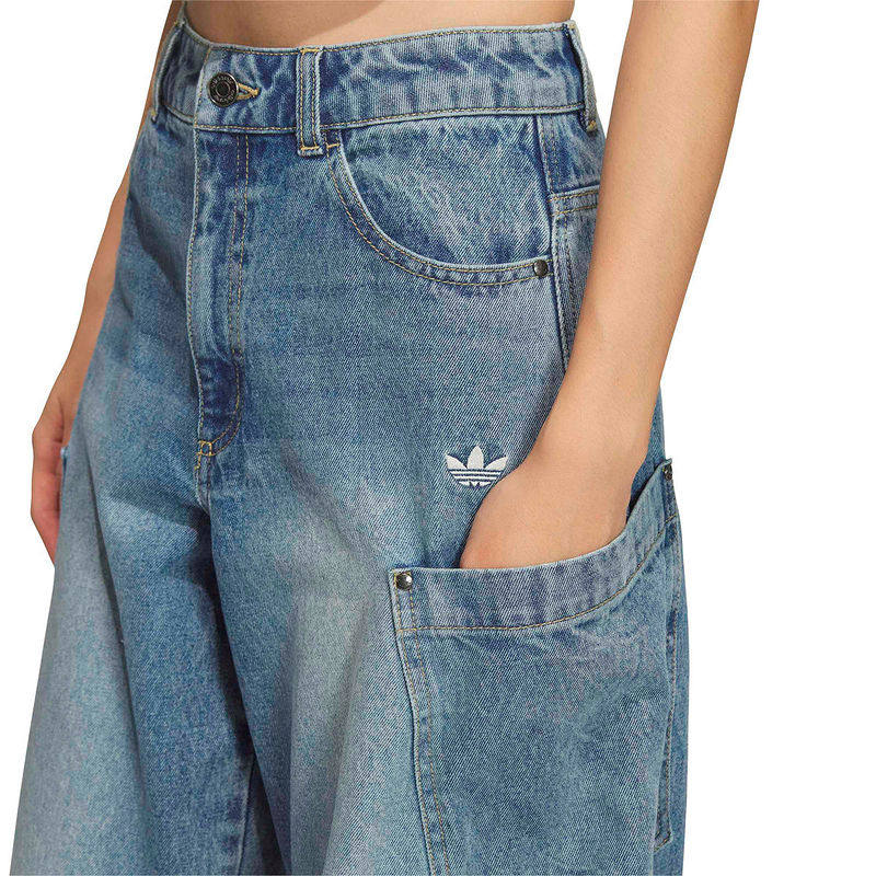 adidas阿迪达斯三叶草牛仔运动裤 女三条纹阔腿长裤 KR2628 自营由