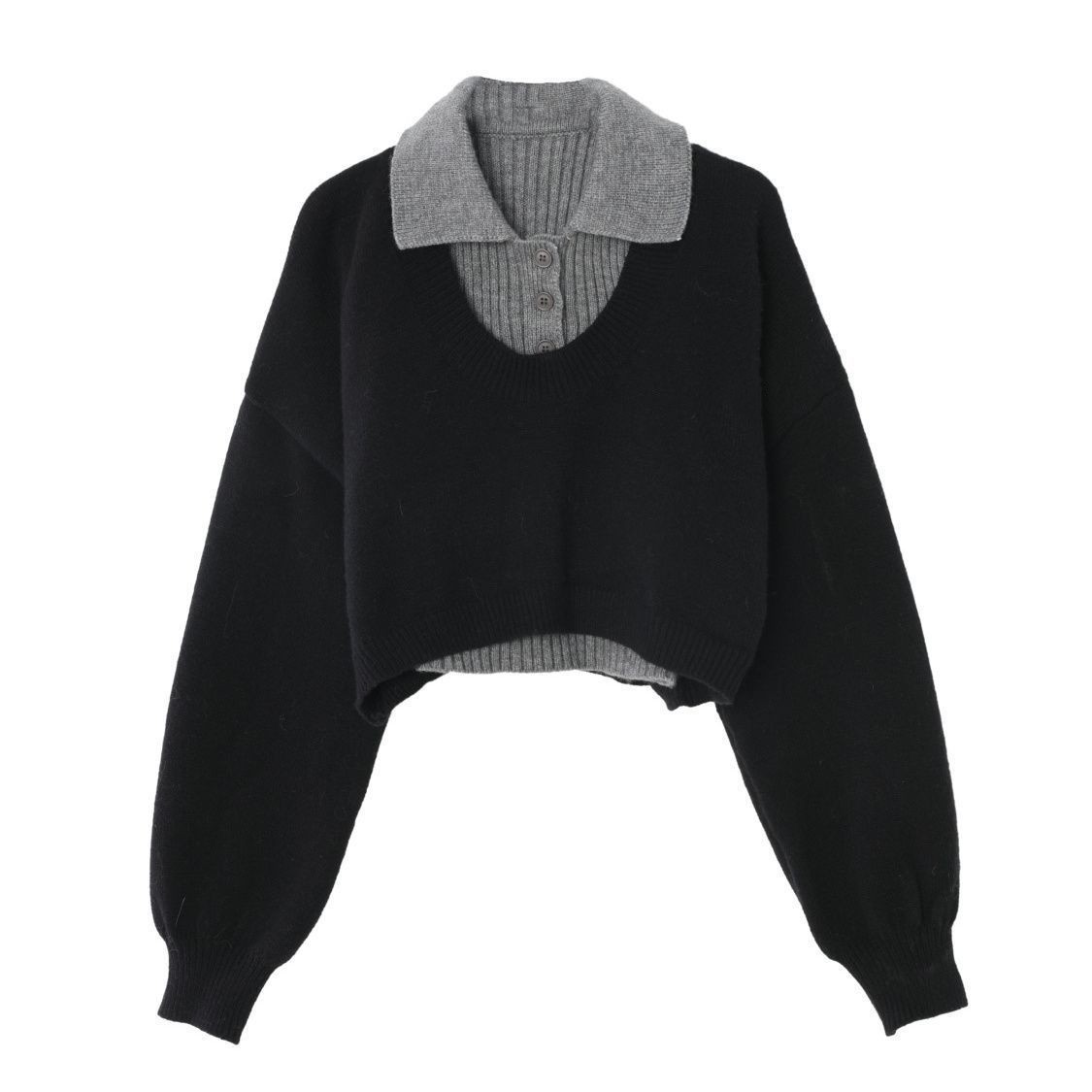 2025春秋新款 小个子短款 毛衣女设计感Polo领针织衫 两件套上衣 美式