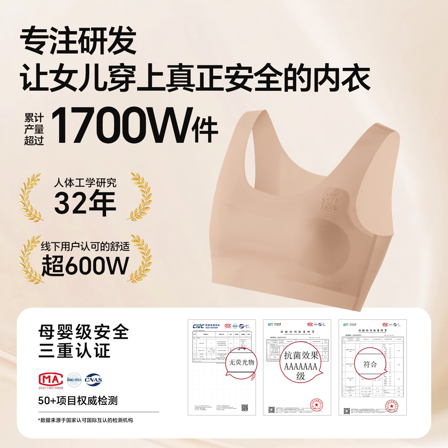 ubras儿童likeuu少女内衣粉底液隐形文胸学生女大童发育期小背心