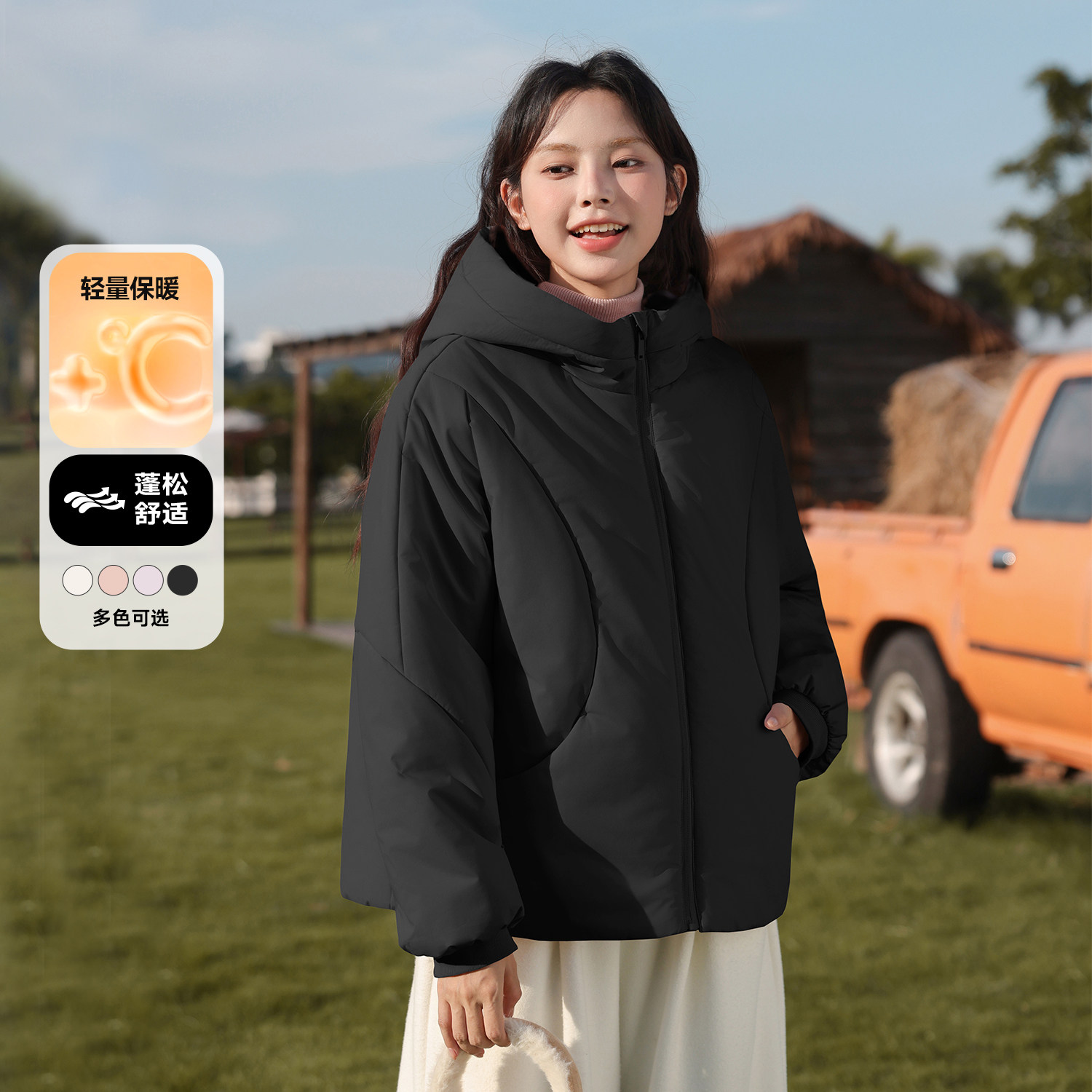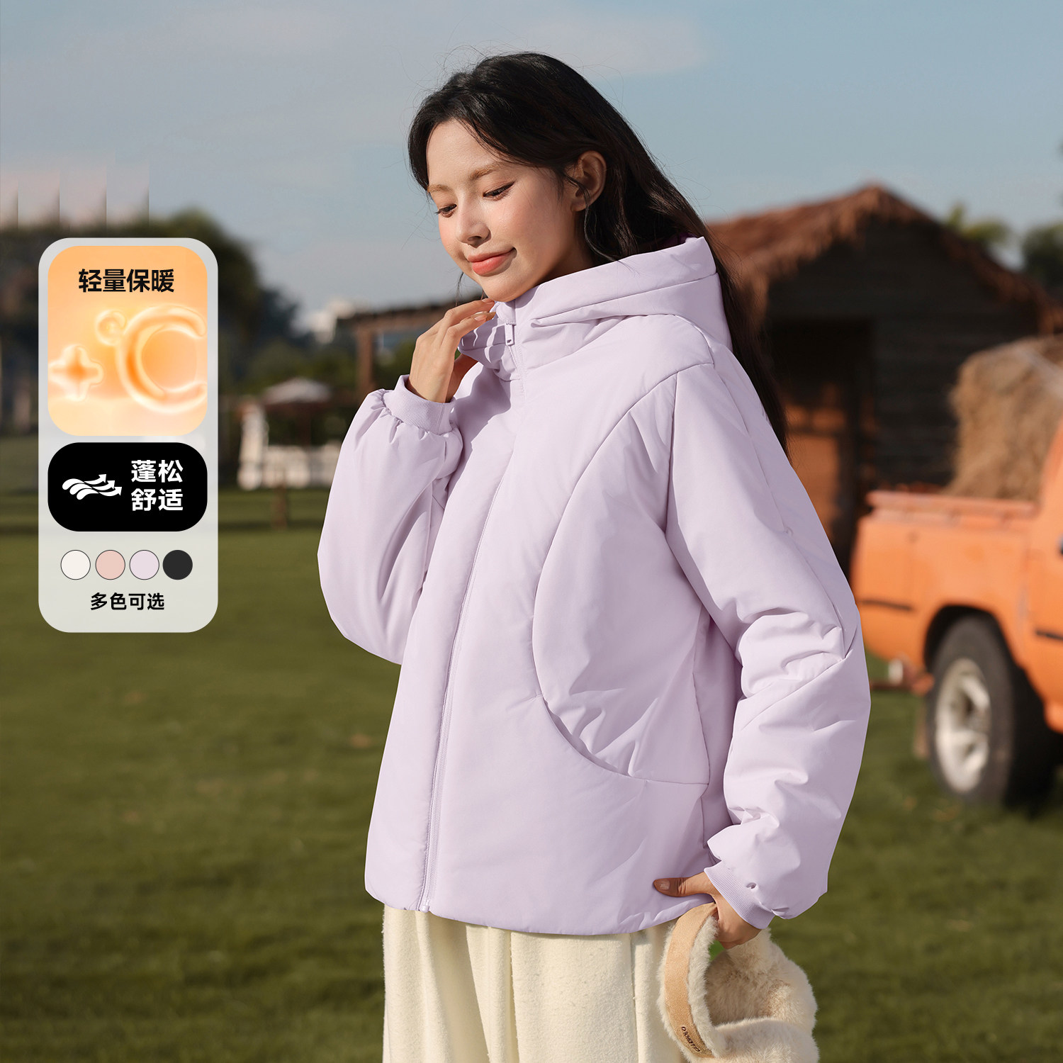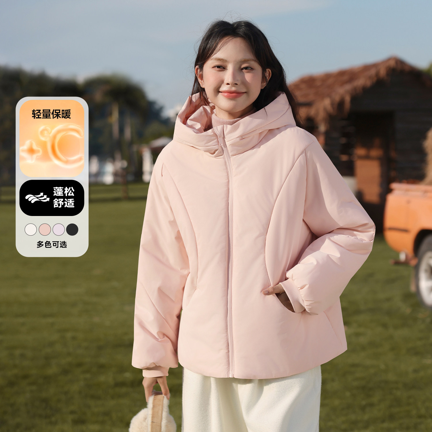 为您提供商品时尚 百搭棉袄厚棉衣外套H 新款 班尼路白色连帽保暖棉服女2026冬季的详细介绍,