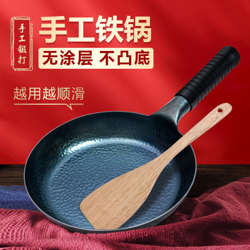 章丘平底锅小铁锅烙饼煎饼锅不粘锅煎蛋锅家用无涂层牛排煎锅专用