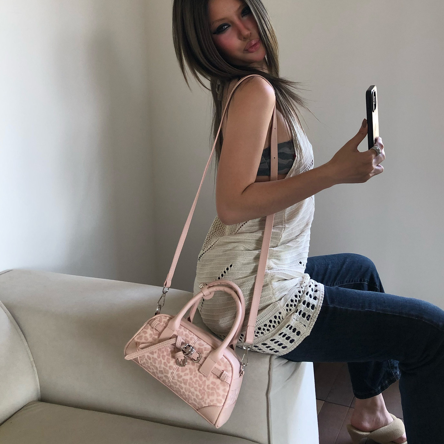 手提包单肩斜挎小包 NBY原创潮牌小香风豹纹贝壳包2026春夏女时尚