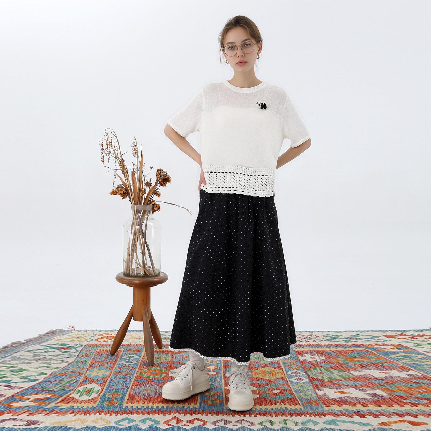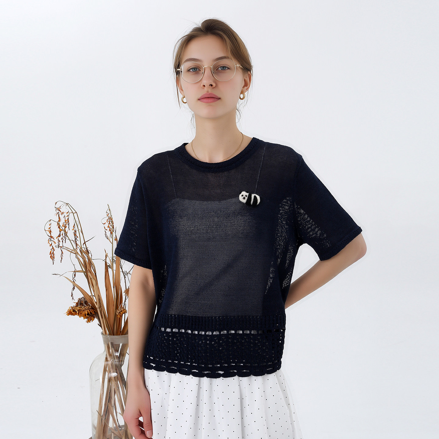 韩系温柔风镂空钩花针织短袖 T恤女春夏百搭短款 针织衫 丙火丁火