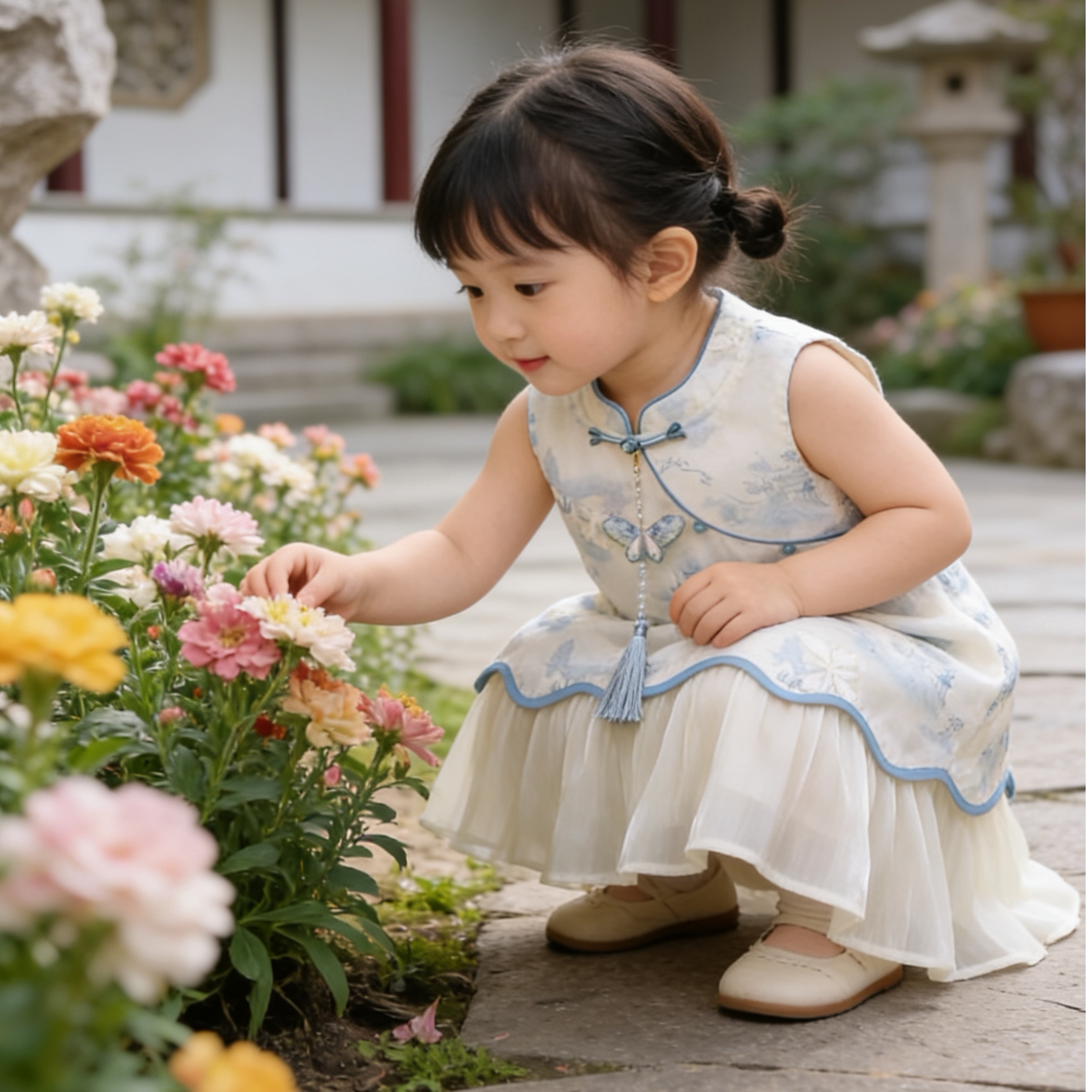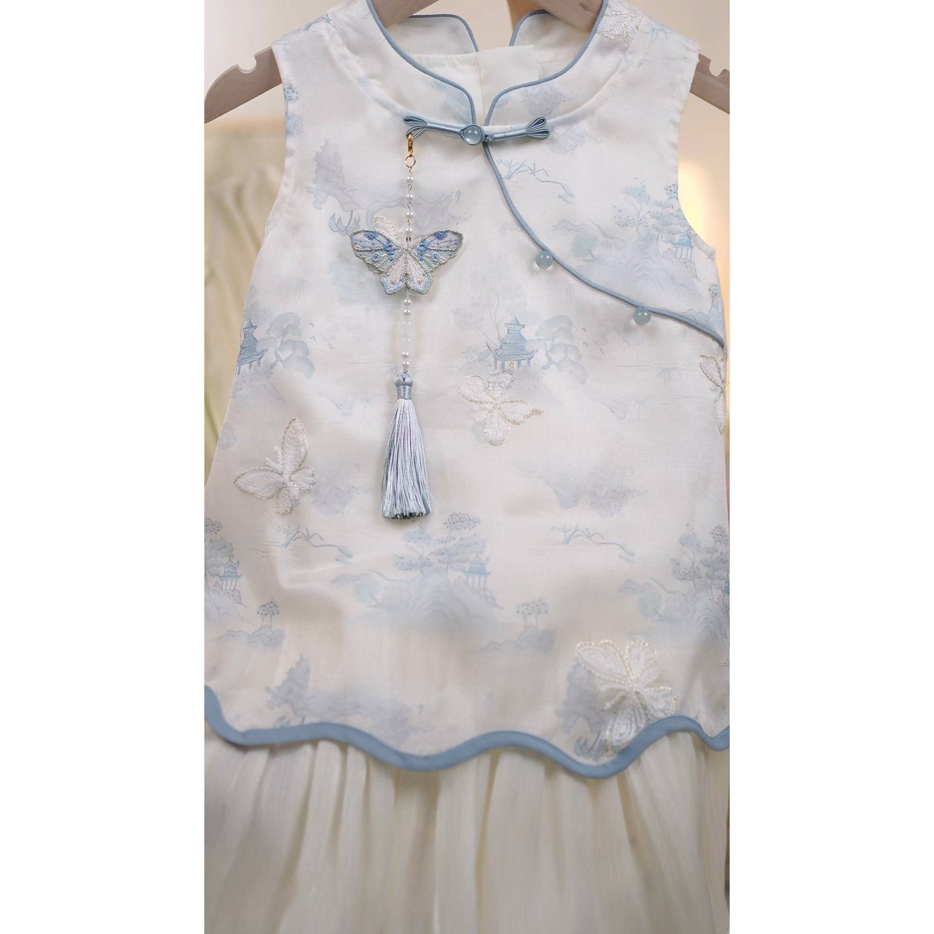 ZC031女童夏季 新中式 国风仙气高端透气旗袍裙 青瓷由