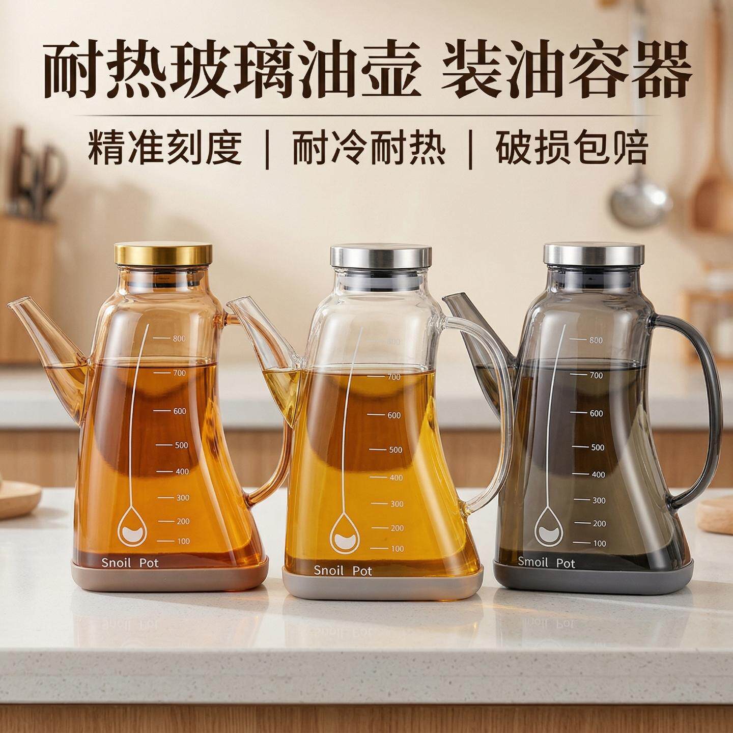 2026热卖 油容器 玻璃油壶家用厨房防挂油第一名油瓶食品级油罐壶装