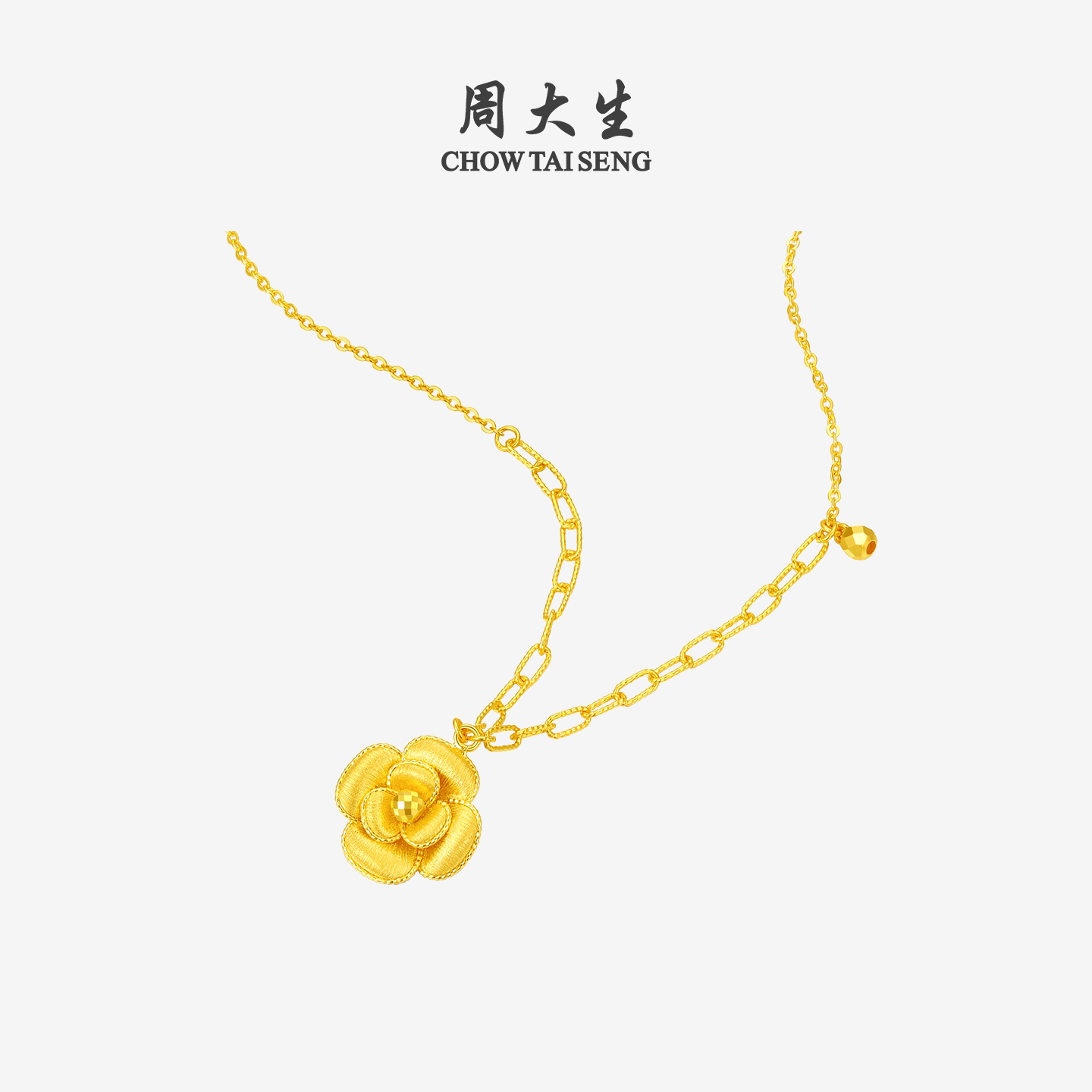 黄金项链足金山茶花套链吊坠生日礼物送女友 周大生十二花神联名