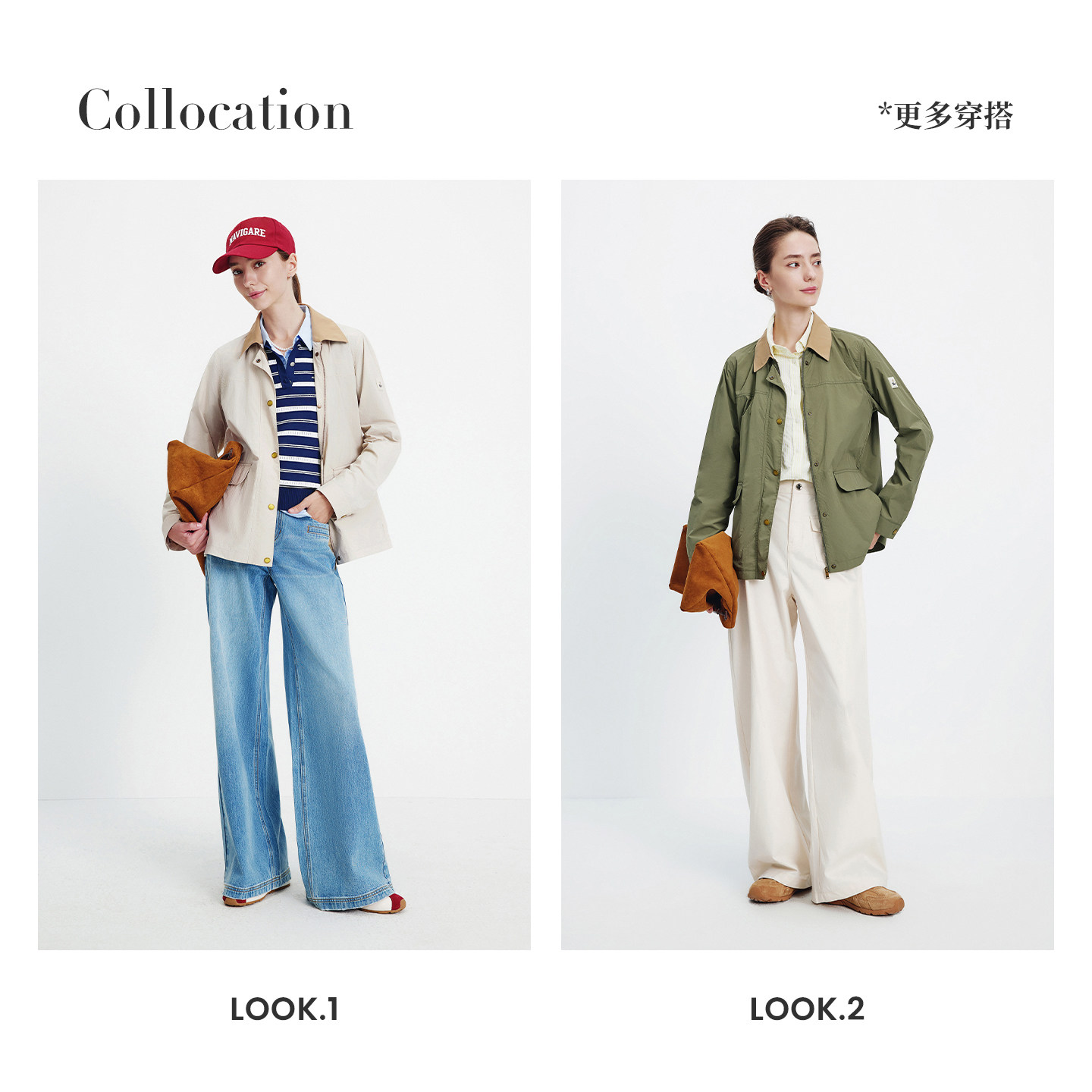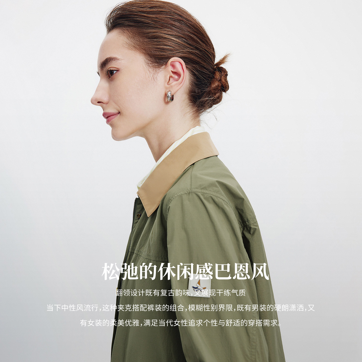 马登美式 夹克美高短外套上衣女士春 巴恩风卡其撞色翻领底特律工装