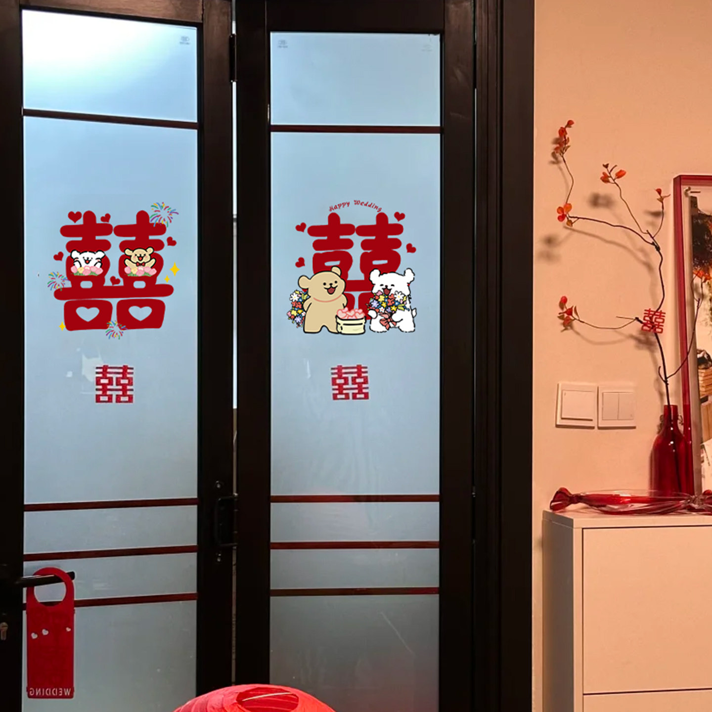 饰窗户贴纸房门大喜字卧室剪纸双囍字大门 喜字结婚专用婚房布置装