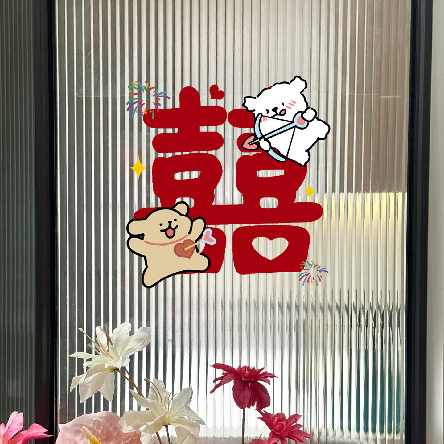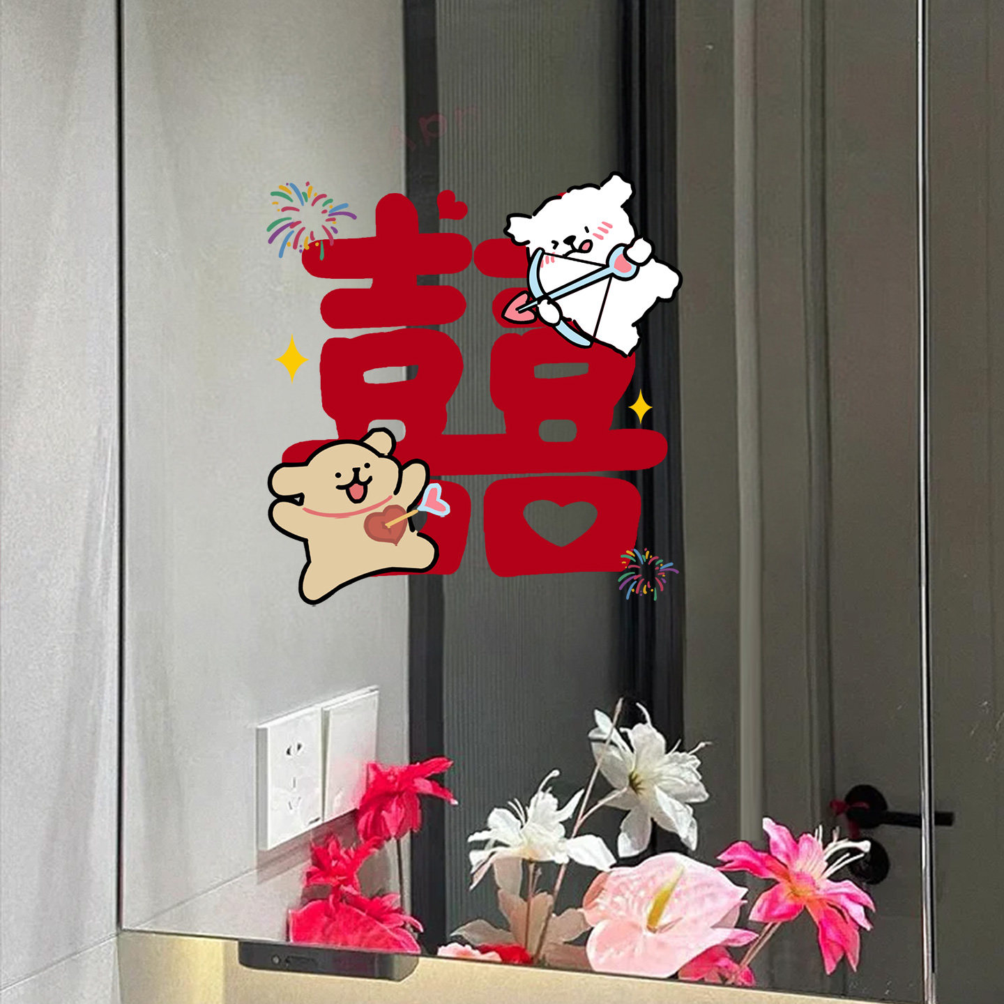 饰布置线条小狗窗花贴纸婚庆用品大全 结婚玻璃静电贴喜字婚房装