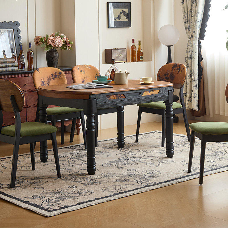 为您提供商品复古实木餐桌家用小户型折叠饭桌中古风伸缩方圆两用餐桌椅子 法式的详细介绍,