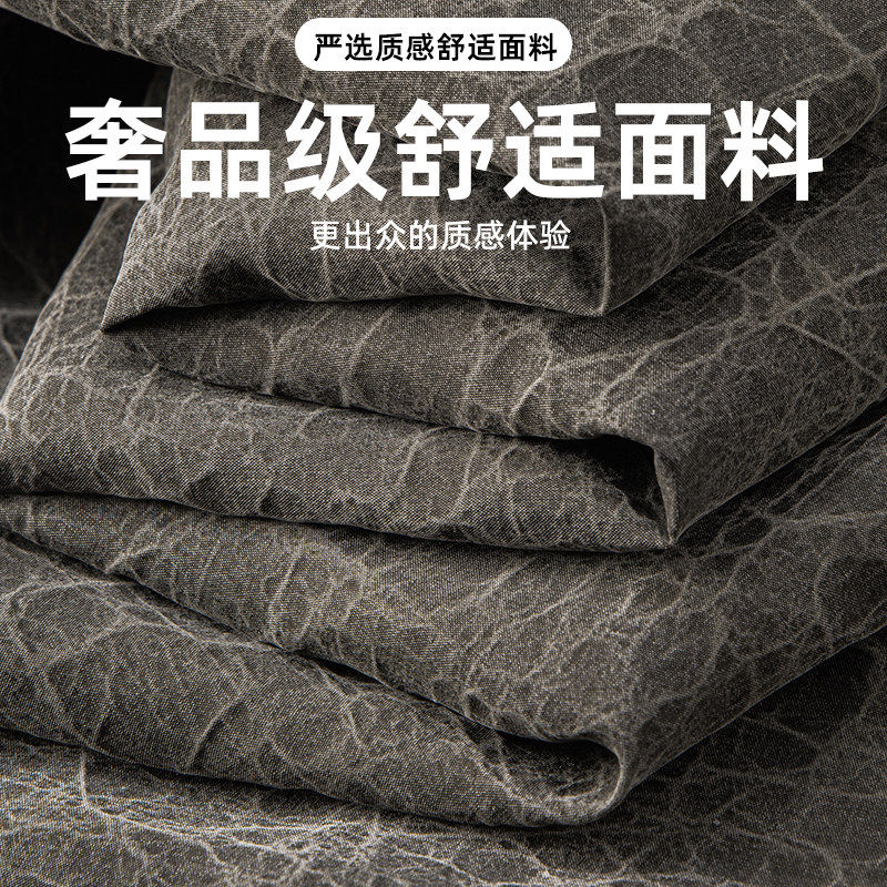 长裤 老爷车100%桑蚕丝香云纱套装 夏季 短袖 中年爸爸两件套 真丝大码