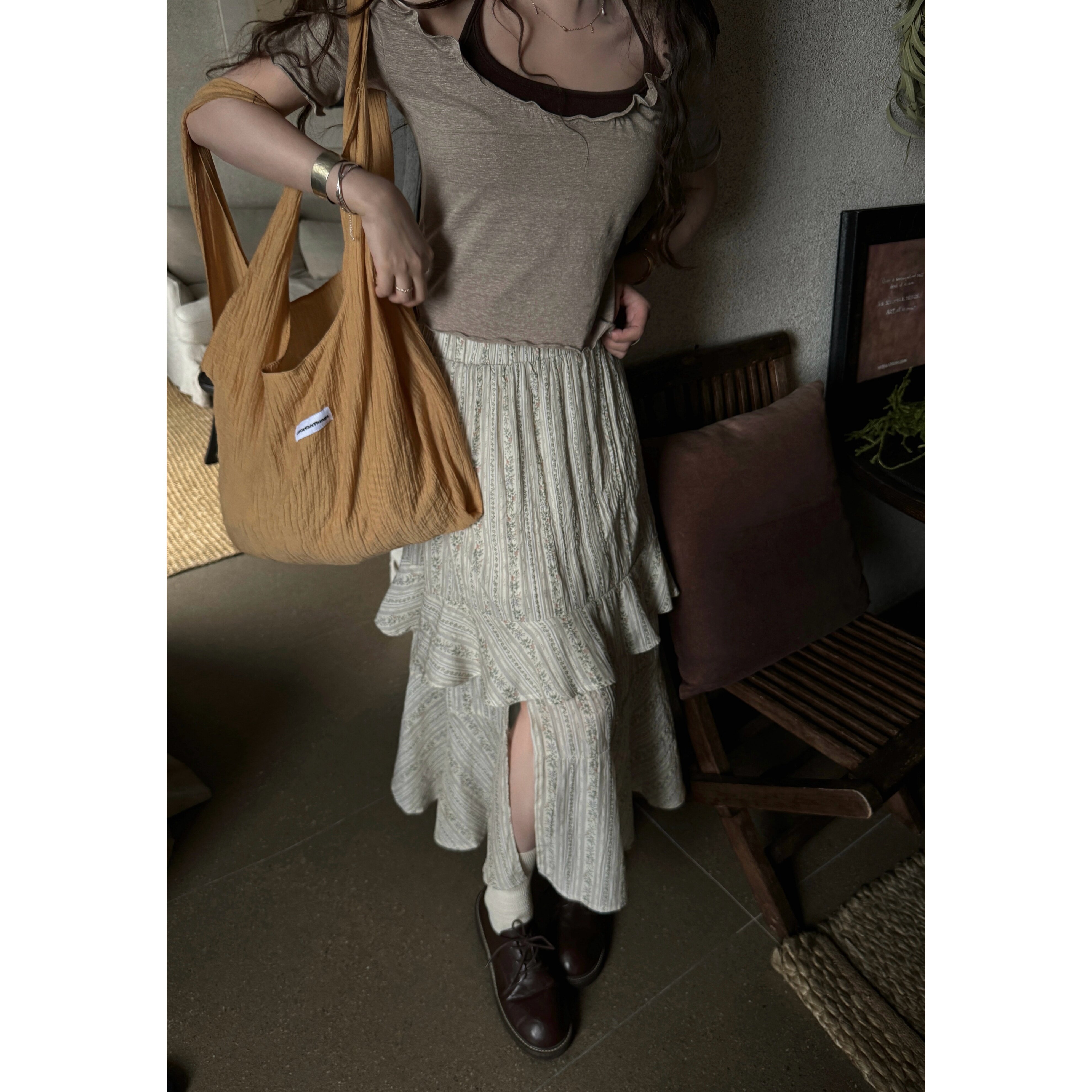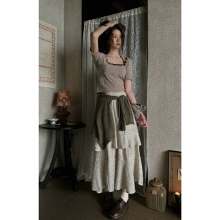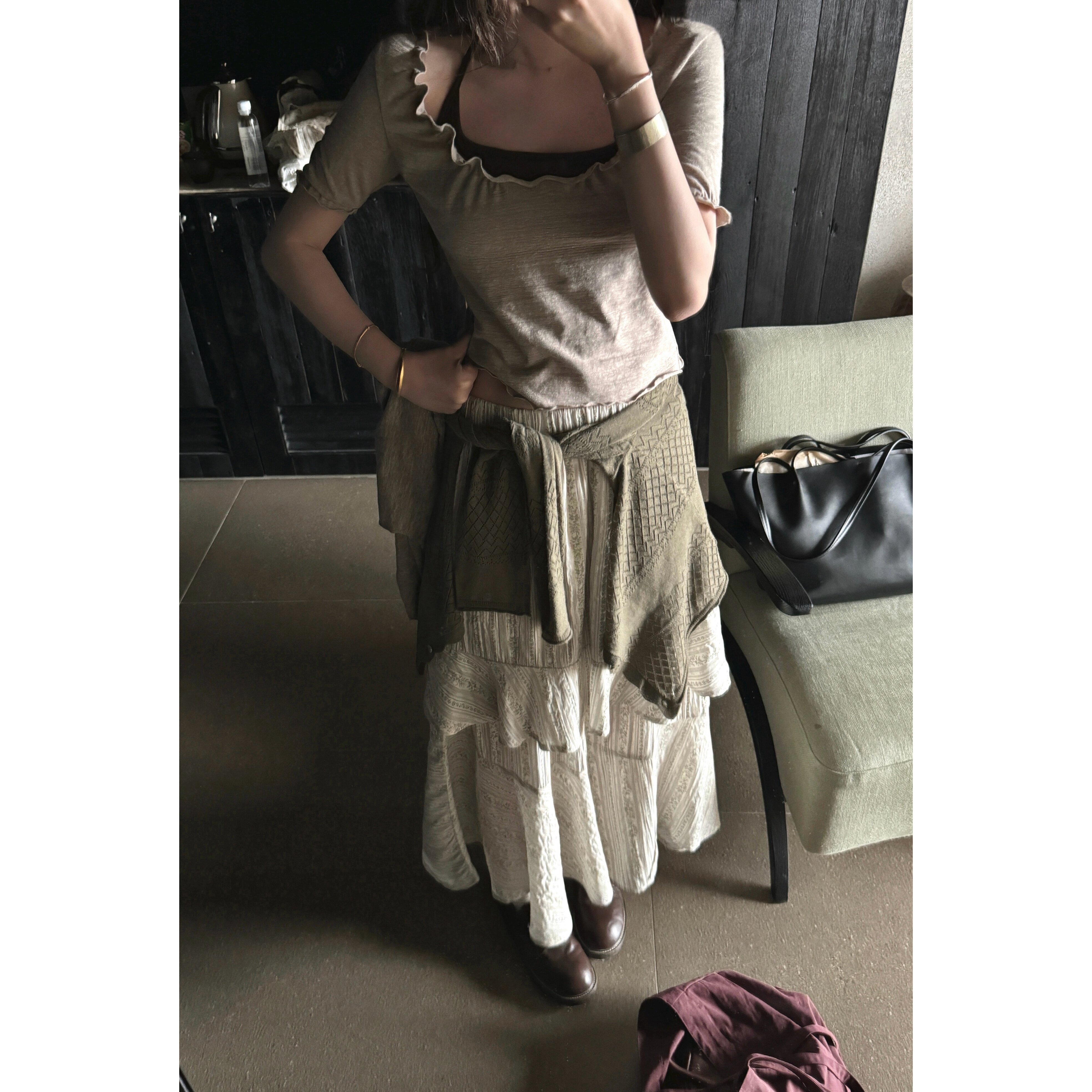 燕麦米灰 83折 新品 T恤 层次感 木耳边短袖 两件套 ﹝jmwomen﹞