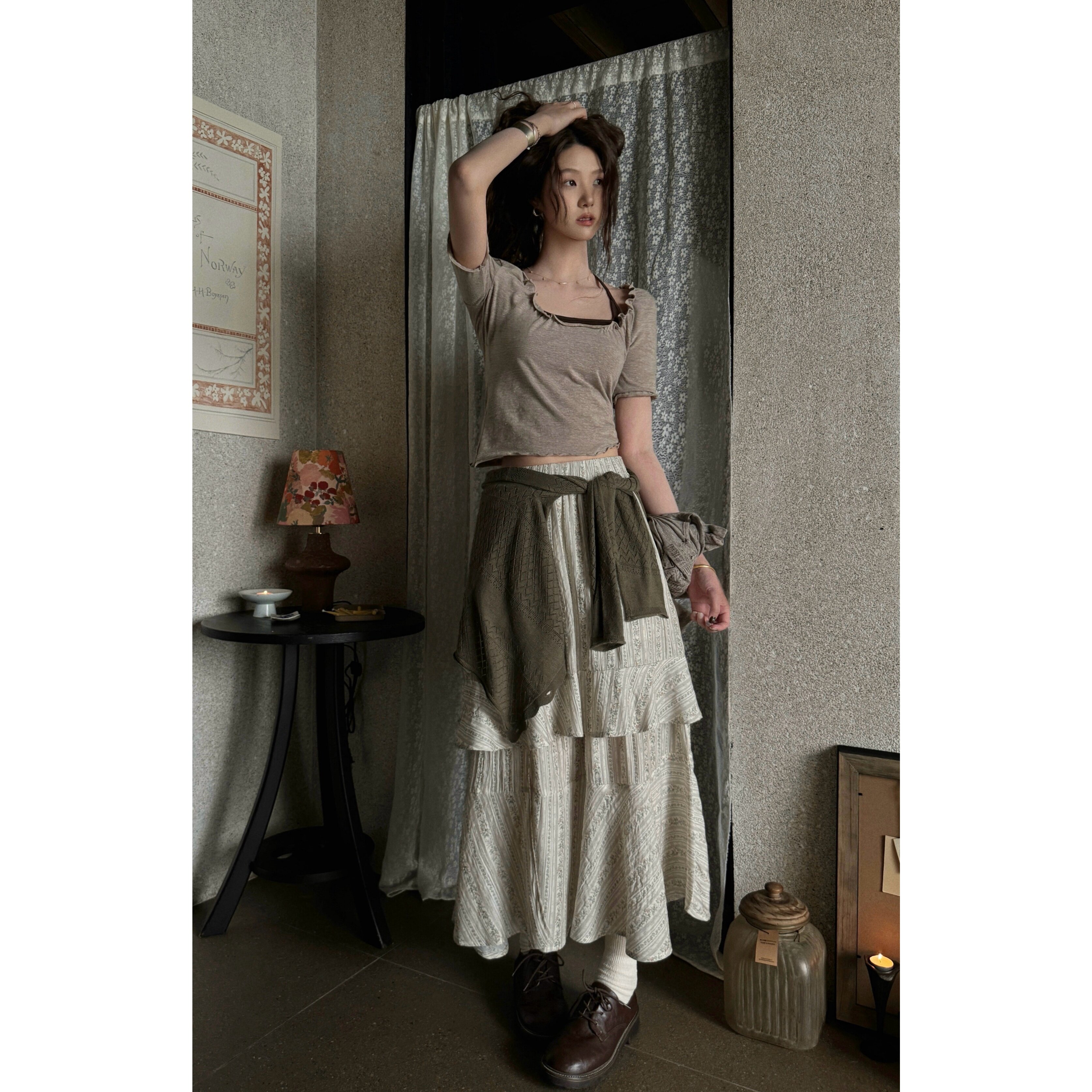 燕麦米灰 83折 新品 T恤 层次感 木耳边短袖 两件套 ﹝jmwomen﹞由