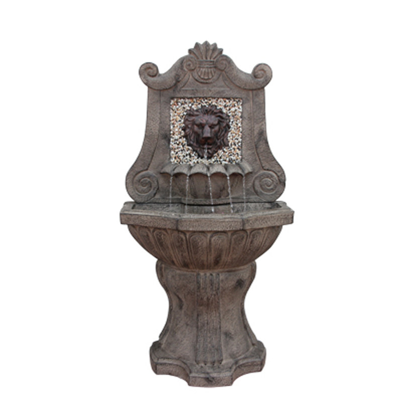 庭院热卖 狮子头喷泉别墅花园户外水池水景景观太阳能流水摆件 欧式由