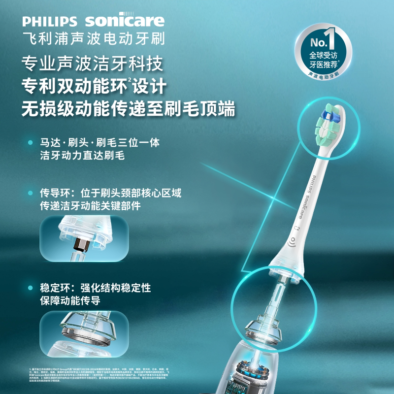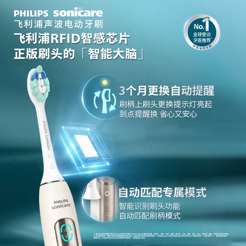 9系列刷柄清洁护龈亮白C2 适配钻石3 飞利浦电动牙刷头官方原装