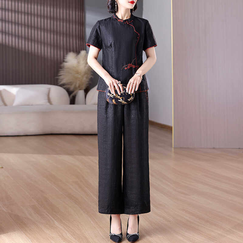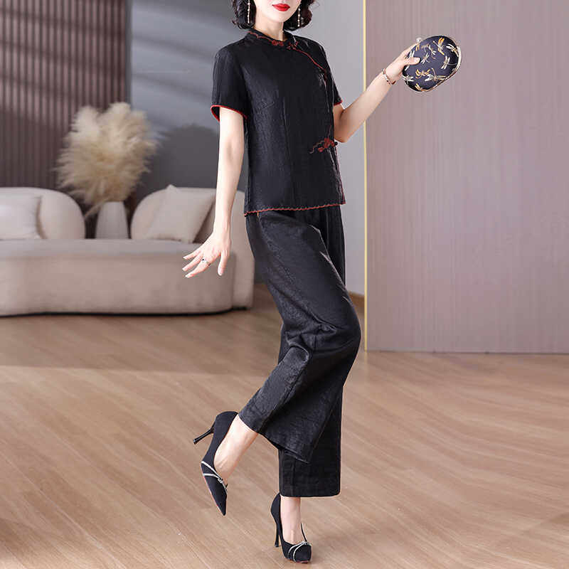 为您提供商品香云纱套装 新款 高端品牌阔太太桑蚕丝上衣阔腿裤 两件套 女2026夏季的详细介绍,