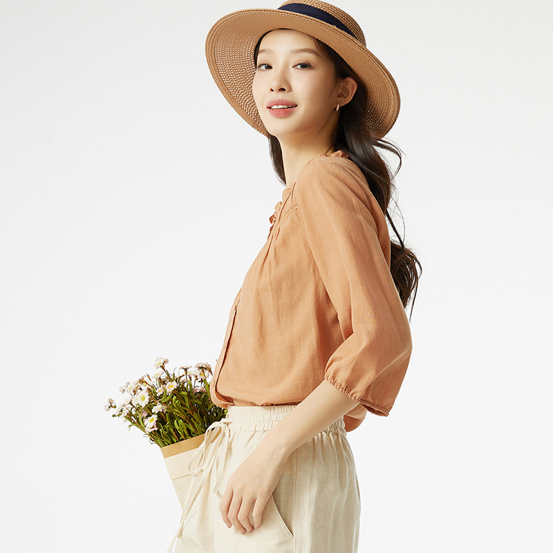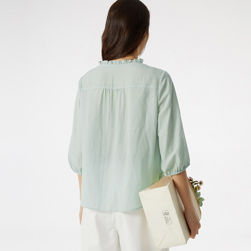 为您提供商品简约文艺花边领镂空设计感七分袖 布景衬衫 女夏季 新品 衬衣0757 小衫的详细介绍,