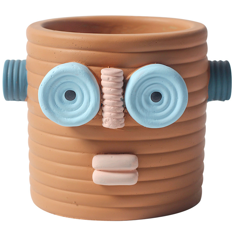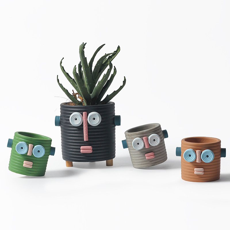 为您提供商品北欧风可爱机器人抽象人像花盆酒店名宿摆饰植物多肉水泥有孔花盆的详细介绍,