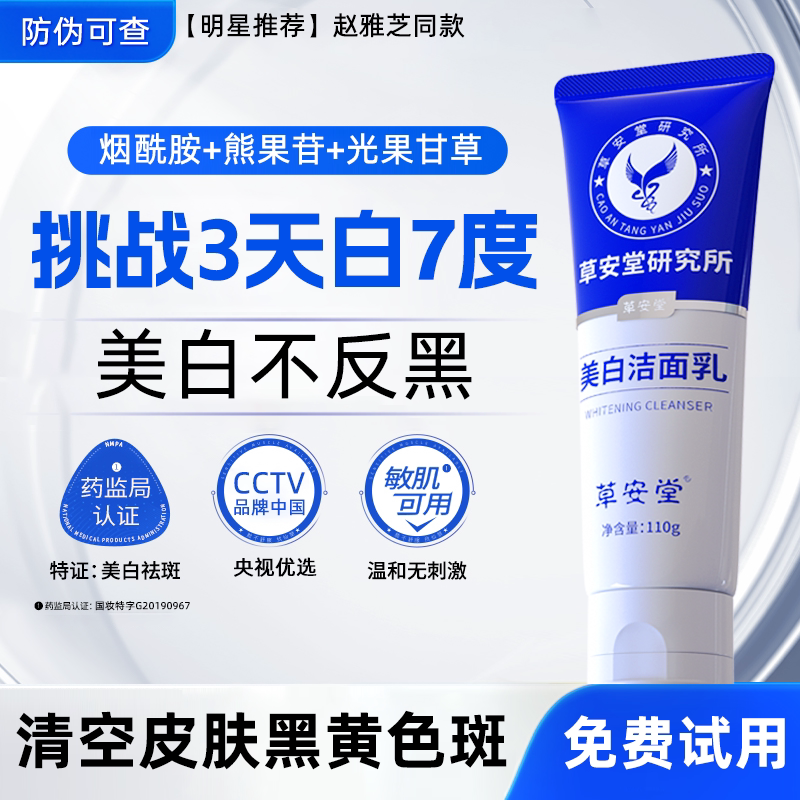 官方旗舰店 草安堂净肤美白洁面乳烟酰胺洗面奶淡斑提亮肤色正品