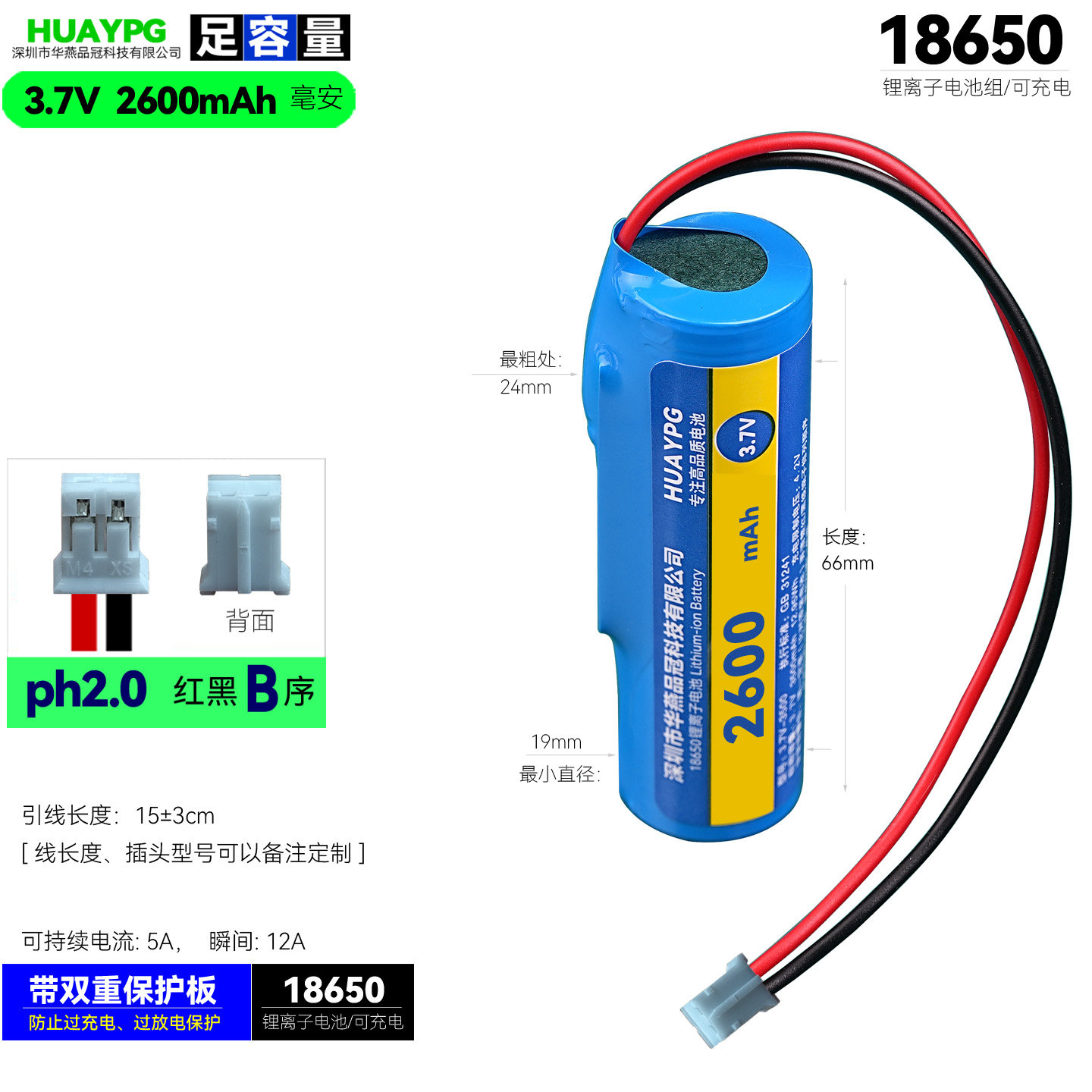 3.7V锂电池18650风扇太阳能灯头灯大容量可充电PH2.0插头带保护板
