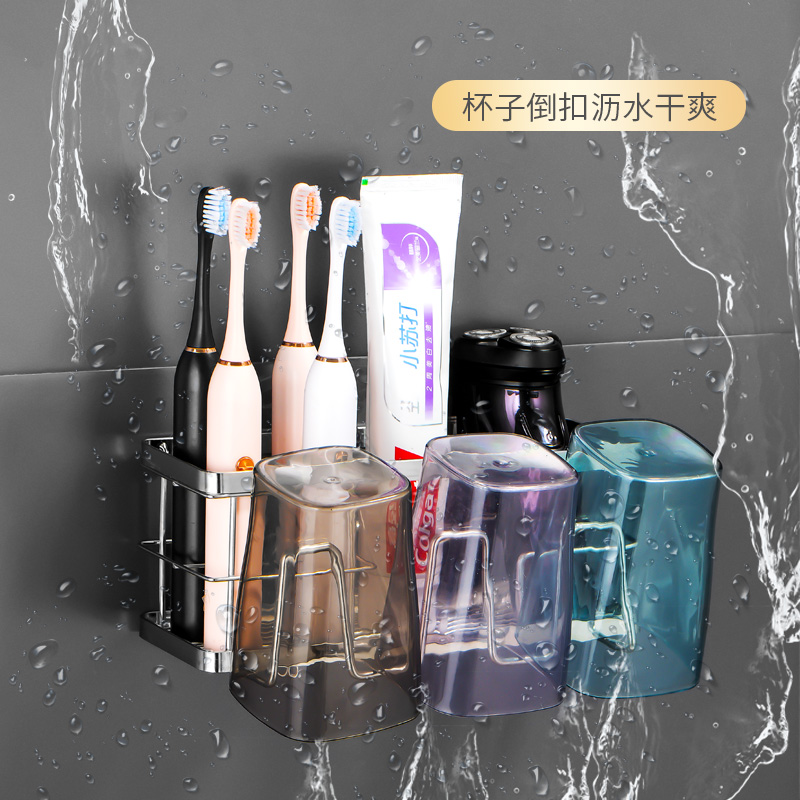 家庭电动牙膏牙刷架子 牙刷置物架免打孔漱口杯刷牙杯卫生间壁挂式