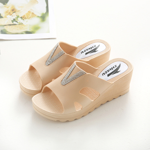 时尚 夏季 厚底女士拖鞋 韩版 家用耐磨防滑洗澡一字拖室外厚底凉拖鞋