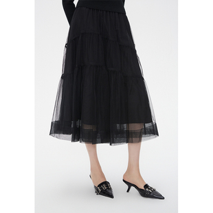 黑色中长款 网纱裙女高腰显瘦仙女半裙 春秋新款 NEELLY纳俪商场同款