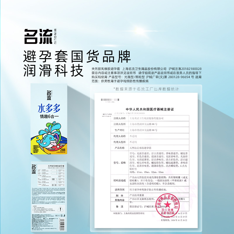 名流水多多玻尿酸避孕套套颗粒男正品 安全套超薄官方旗舰店囤货装